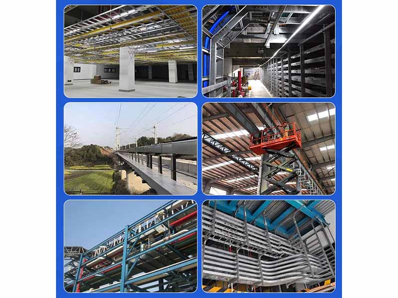 电缆桥架是现代企业及高层建筑配电线路铺设方式的电新发展。它具有施 工方便、灵活:安装后整洁、美观:检修容易等特点。电缆桥架的诞生弥补了旧 式配电设计无法更新、整容、无火能力的不足!